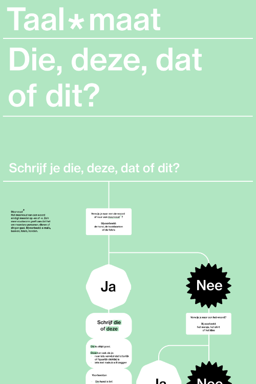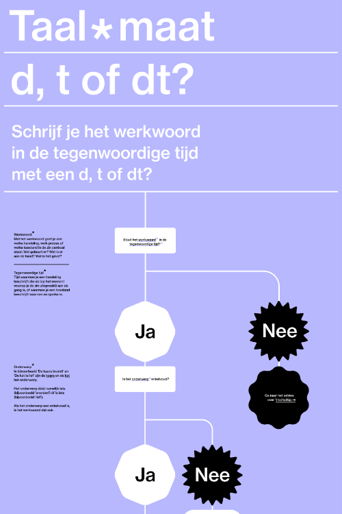 Bij negen veel geraadpleegde taalkwesties op de website van Onze Taal heb ik stroomdia- grammen ontwikkeld. Ze leiden de gebruiker stap voor stap naar het goede antwoord.